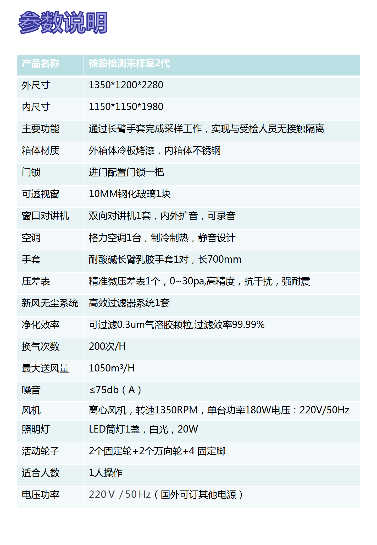 為了更好的保護(hù)采樣人員的安全和提供一個(gè)舒適的工作環(huán)境,青島路博環(huán)保設(shè)計(jì)了一款可移動(dòng)式核酸采樣隔離箱,可以給檢測(cè)人員提供一個(gè)安全的采樣空間。