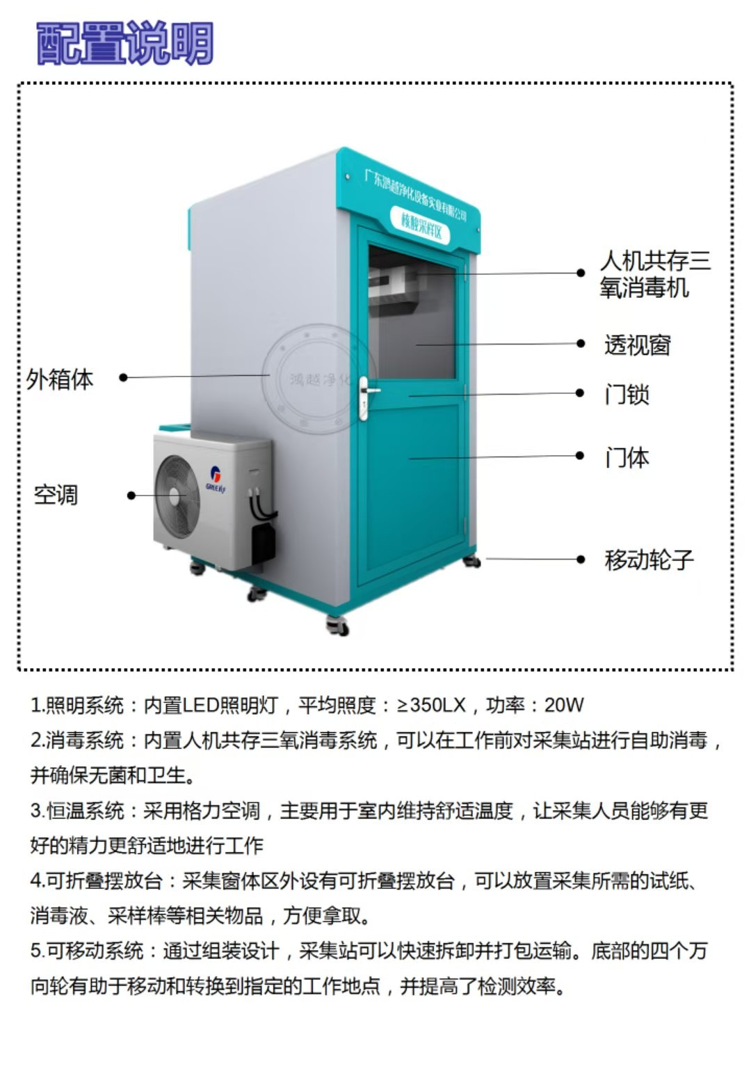 8.內(nèi)部設(shè)有LED燈照明,方便醫(yī)護(hù)人員夜間核酸采樣